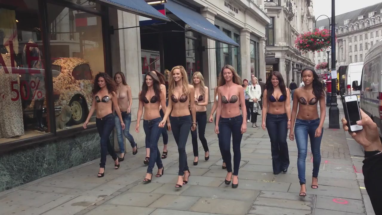 InvisiBra models caused a sensation and garnered global attention while strutting down the runway on Regent Street in London on July 31st 2013.